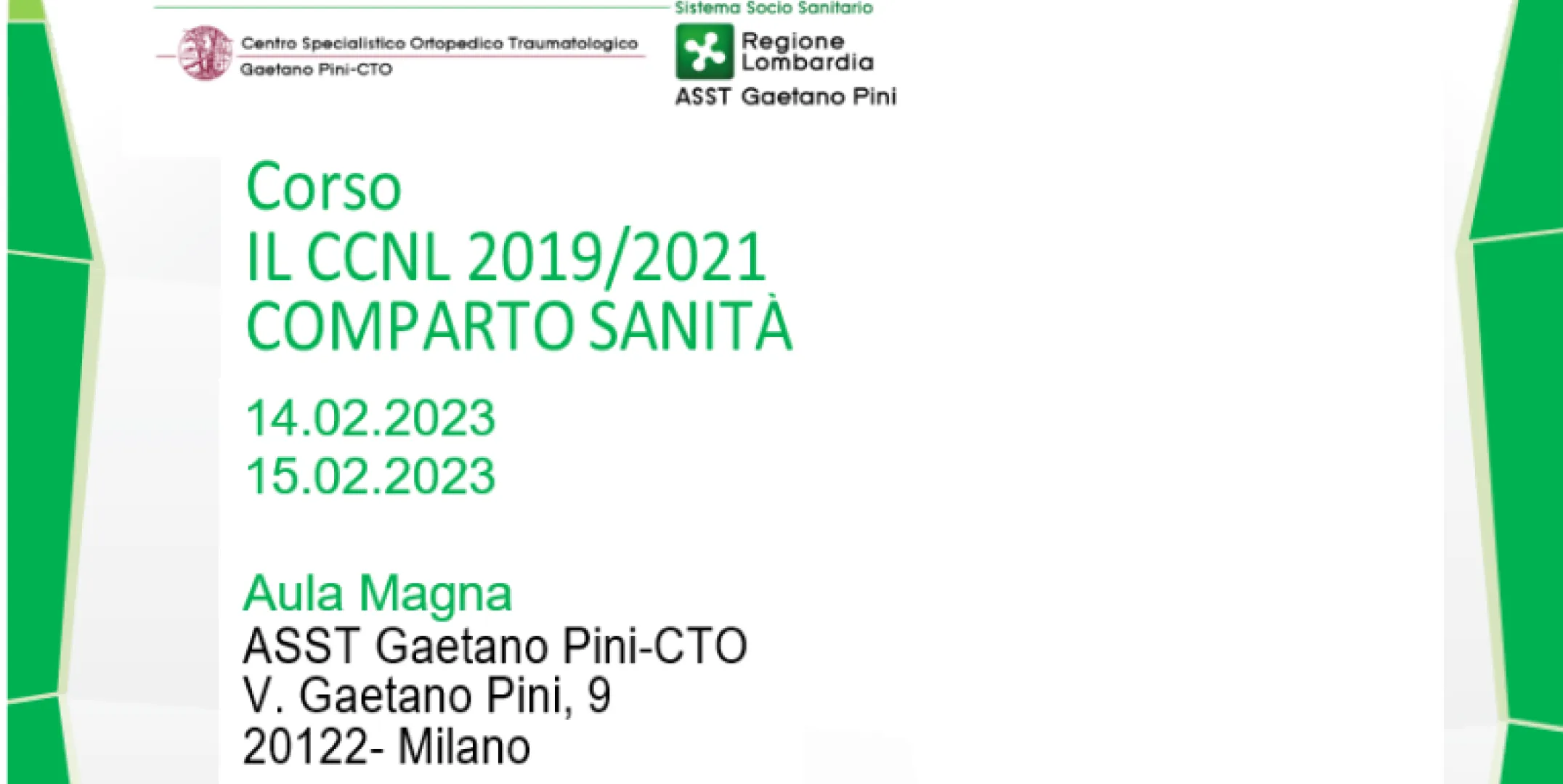 Evento ASST - Il 2 novembre 2022 è stato sottoscritto il Contratto Collettivo Nazionale di Lavoro relativo al personale del Comparto Sanità per il triennio 2019/2021. Il CCNL ha operato sostanziali modifiche ad alcuni istituti del rapporto di lavoro, innovando aspetti salienti del trattamento normo-economico del personale. L'ASST Gaetano Pini-CTO tiene un corso al fine di illustrare al personale interessato operante all'interno degli uffici Risorse Umane delle ASST, ATS e di Regione Lombardia le novità introdotte dal nuovo contratto collettivo nonché di fornire adeguata conoscenza delle modifiche apportate agli istituti preesistenti.