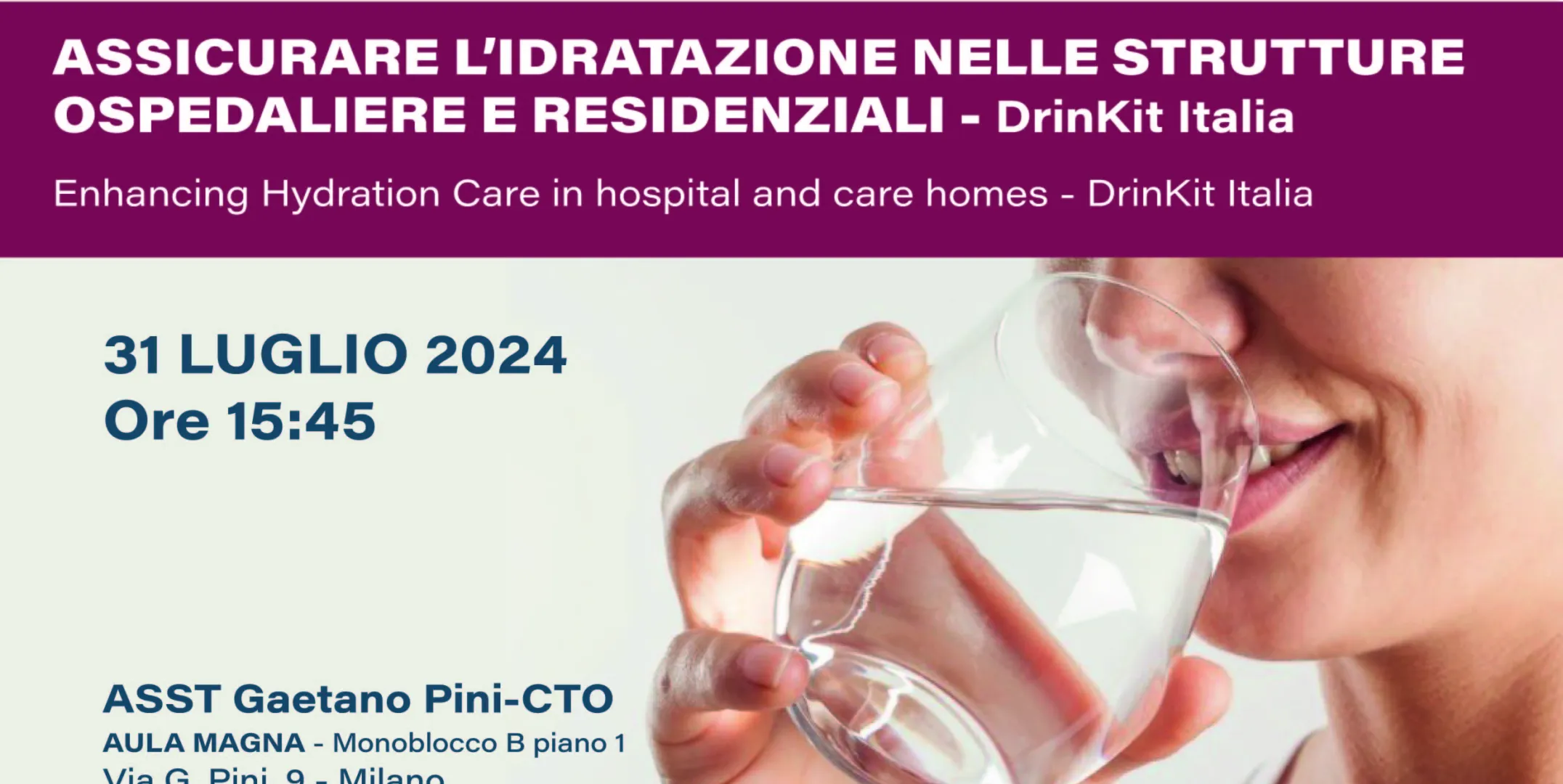 I risultati del progetto saranno presentati il 31 luglio, nel corso del meeting “Assicurare l’idratazione nelle strutture ospedaliere e residenziali – Il programma DrinKit Italia”, che si terrà all’ASST Gaetano Pini-CTO. Al meeting parteciperà anche la ricercatrice Diane Bunn, professoressa associata di ricerca infermieristica dell’Università Est Anglia, Regno Unito, ideatrice e promotrice del programma DrinKit. La prof.ssa Bunn nella stessa giornata visiterà l’unità operativa Riabilitazione mielolesi per valutare l’applicazione del programma.