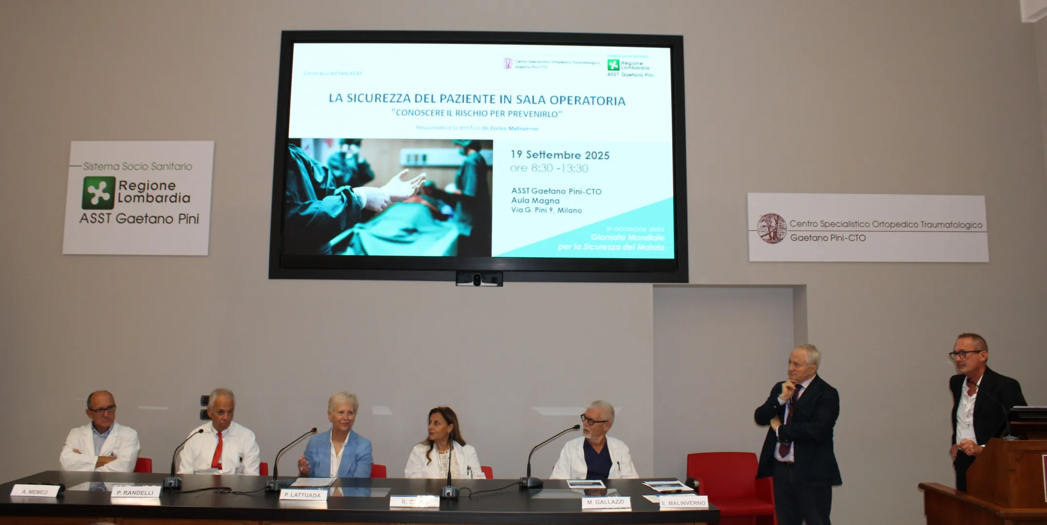 Milano, Venerdì 19 Settembre 2025 - Si è svolto oggi presso l’Aula Magna dell’ASST Gaetano Pini – CTO il Convegno dal titolo “La sicurezza del Paziente in Sala Operatoria: conoscere il rischio per prevenirlo”, promosso e organizzato nell’ambito della UOS Qualità e Risk Management dal Dott. Enrico Malinverno, Risk Manager Aziendale e dal Dott. Giovanni Muttillo, Direttore UOC Direzione Aziendale delle Professioni Sanitarie e Sociosanitarie (DAPSS) e FF Responsabile UOS Qualità e Risk Management, un significativo momento di confronto sulle sfide per la sicurezza del paziente che implica la prevenzione e la riduzione dei rischi.
