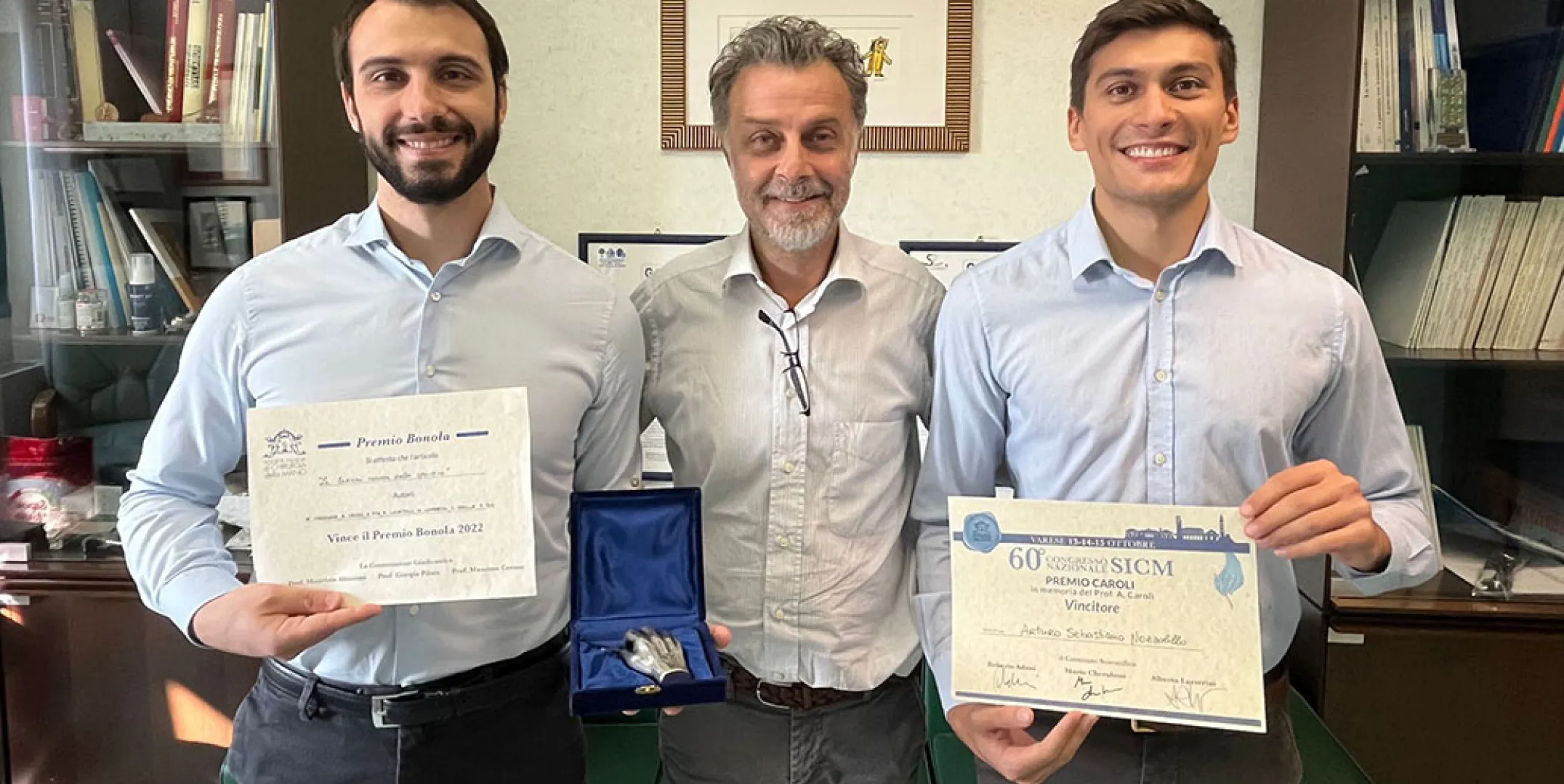 - Premio Augusto Bonola per il miglior lavoro scientifico pubblicato sulla Rivista Italiana di Chirurgia della Mano biennio 2020-2022 dal titolo “Le lesioni nervose nello sportivo” a cura dei dottori Mauro Magnani, Alessandro Crosio, Alessandra Fin, Francesco Locatelli, Michele Lombardo, Simona Odella e Pierluigi Tos