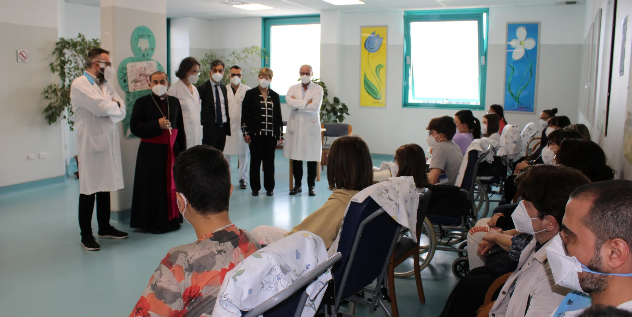 Dopo la visita all’area pediatrica che ospita pazienti da 1 e 18 anni e le loro famiglie, l’Arcivescovo incontra il personale dell’ASST in Aula Magna per un momento di dialogo e confronto sui temi della lotta al Covid e del ruolo fondamentale dei medici e degli infermieri nella cura dei più fragili