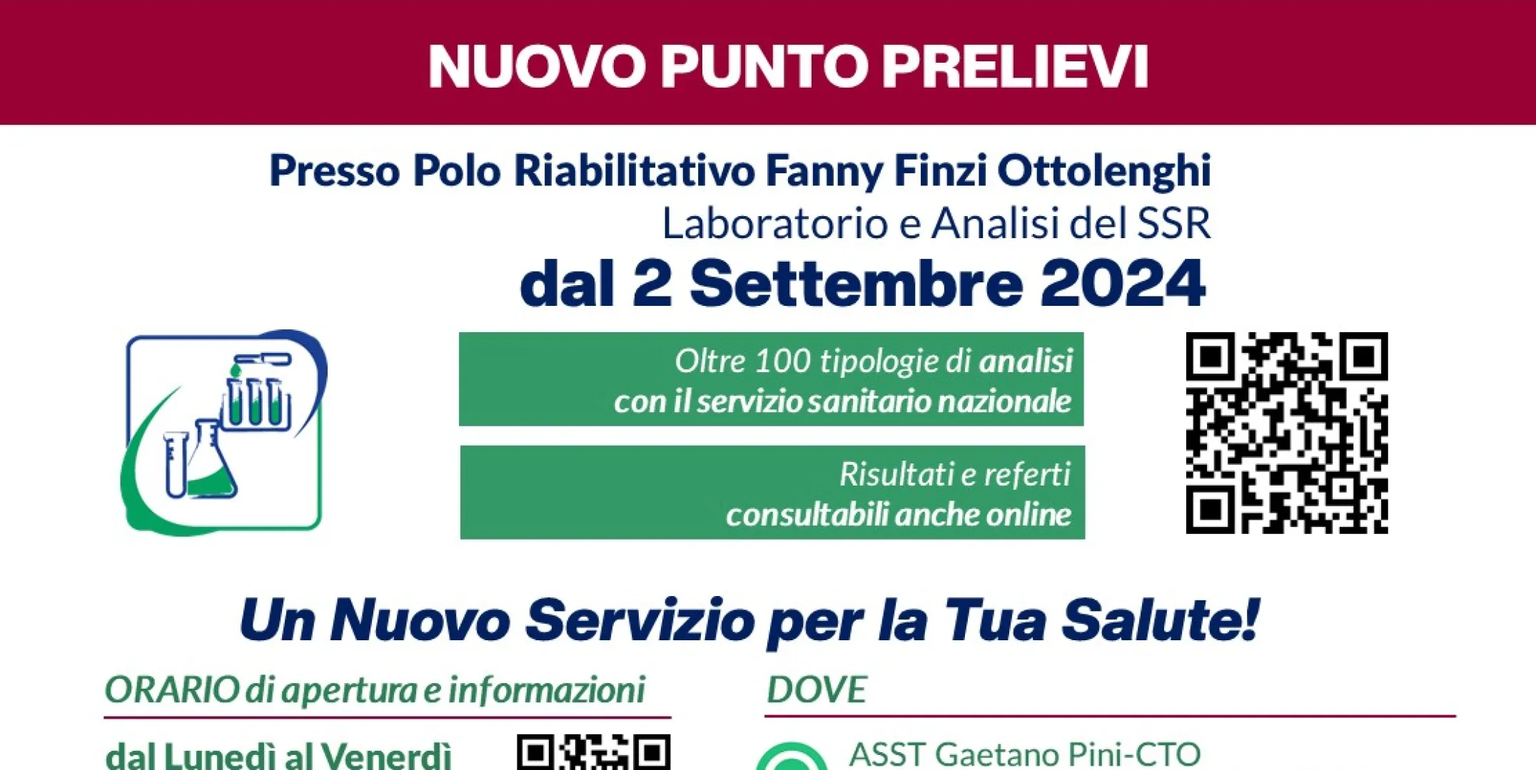 NUOVO PUNTO PRELIEVI DAL 2 SETTEMBRE - POLO FANNY FINZI OTTOLENGHI