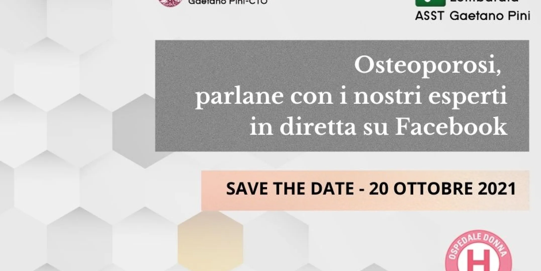 Milano, 14 ottobre 2021 –Il 20 ottobre, in occasione (H)-Open Day dedicato alla salute delle ossa, voluto da Fondazione Onda, Osservatorio nazionale sulla salute della donna e di genere e della Giornata Mondiale dell’Osteoporosi, l’ASST Gaetano Pini-CTO terrà una diretta sulla pagina Facebook aziendale alle ore 12. Gli specialisti dell’ASST risponderanno alle domande dei pazienti. Interverranno: