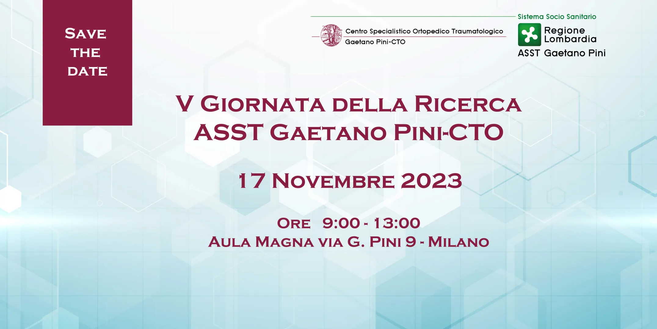 SAVE THE DATE - V GIORNATA DELLA RICERCA ASST GAETANO PINI CTO